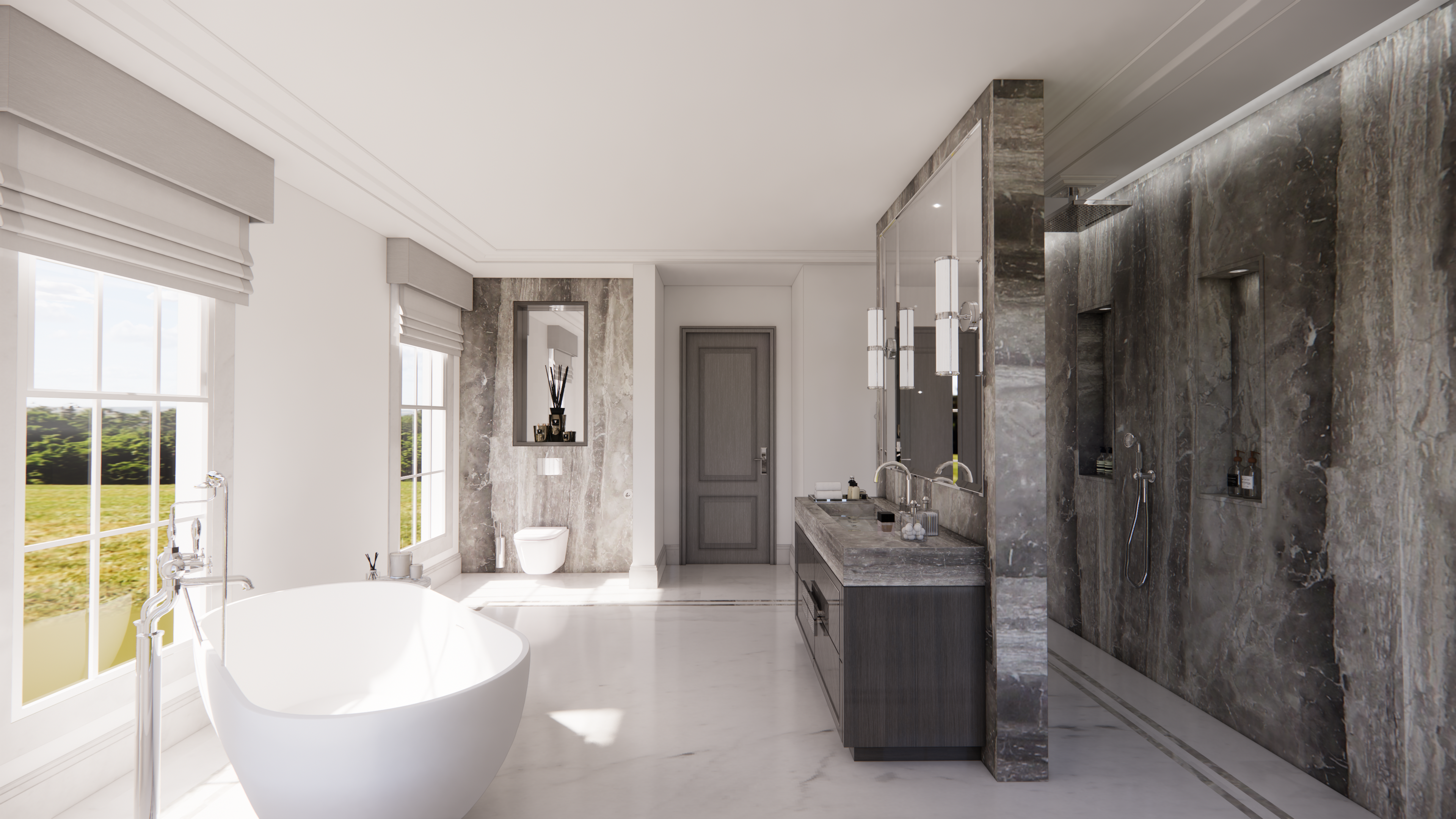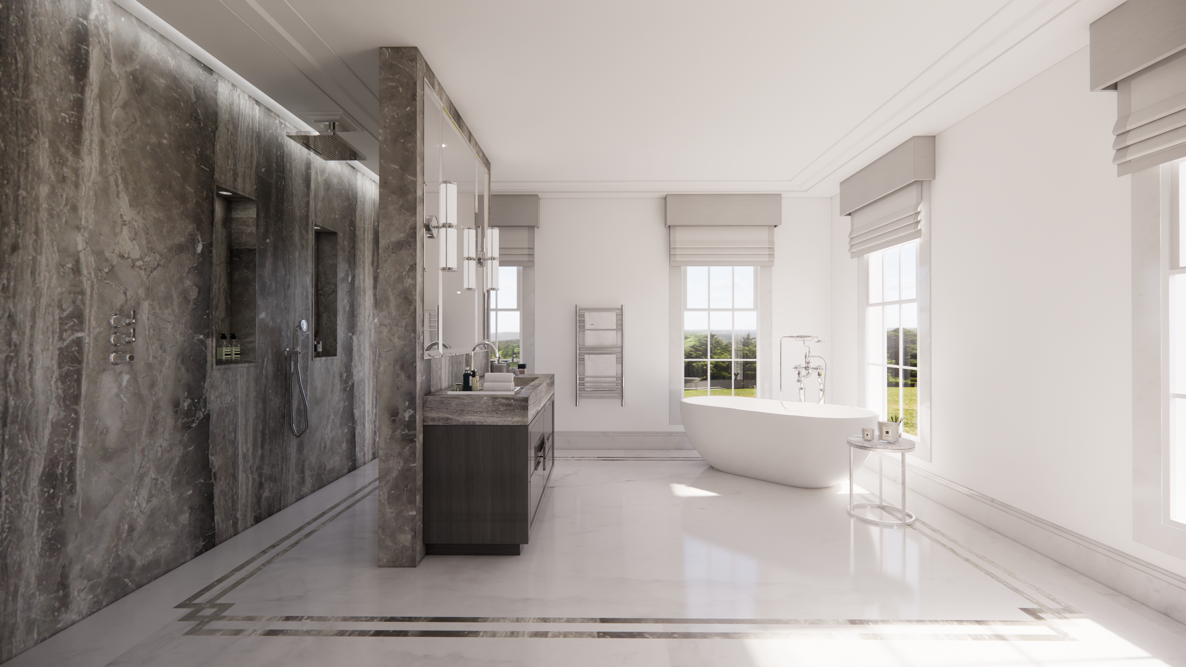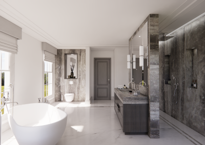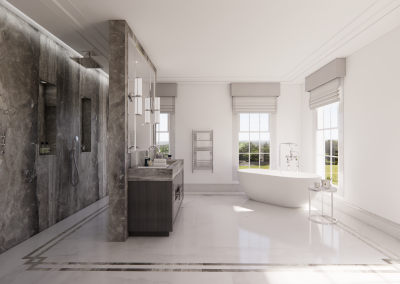 Set amongst matured landscaping, the expansive home comprises five receptions rooms, six bedroom suites and an indoor leisure complex with swimming pool, steam room, gym, bar and Jacuzzi.